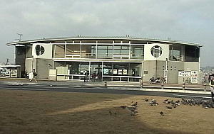 船の発着場。門司と唐戸を結ぶ関門汽船は、5分の船旅で大人400円。巌流島行きの船が出ている。往復900円。(2023年時点で門司港発着便は運休) 正式名は舟島ですよ。 山口県しものせき市になります。行っても何も無いよ。 巌流島は1周1600mですが、 私有地が3分の2を占めているので、1周は出来ません。 建物は2階建てで、左右対称になっているようです。2階は、ガラス張りです。