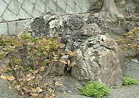 旧門司の甲宗(こうそう)八幡神社前の海に停泊する、三韓の船を繋ぎ留めるために、綱をかけたとされる岩。 もとは鳥居下の石段を下りた辺りの海辺にあったものを、埋め立てにより境内の放生池に移動された。ところが今は、池ではない。言われないと何かわからない。 ただの石です。 神社の人に案内されて、「これです」!80センチ四方の石です。場所:旧門司 甲宗(こうそう)八幡神社バス停下車。関連が2つあります。